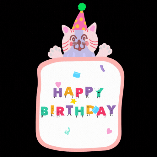 cute birthday gifs, cat birthday gif, happy birthday gifs, animated cat gif, birthday surprise animation, funny birthday gifs with animals, confetti birthday gif, kitten party gif