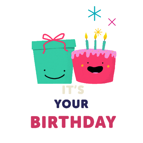 A smiling cake with lit candles and a cheerful gift box says “It’s Your Birthday!”This animated birthday card is great for friends, kids, or family. One of the best cute and happy birthday GIFs to share joy.