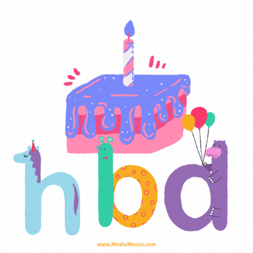 This birthday GIF turns “HBD” into colorful animals holding a frosted cake. Playful, creative, and fun – perfect for funny birthday GIF fans. A delightful pick for animated birthday wishes with a quirky touch.