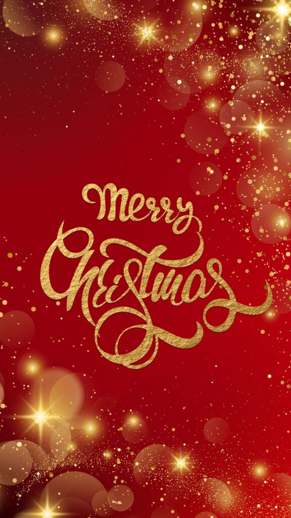 Add a touch of sophistication to your phone with this elegant Christmas wallpaper featuring shimmering golden “Merry Christmas” calligraphy on a luxurious red background, accented by glowing stars and sparkles. Ideal for those who love a glamorous holiday aesthetic.