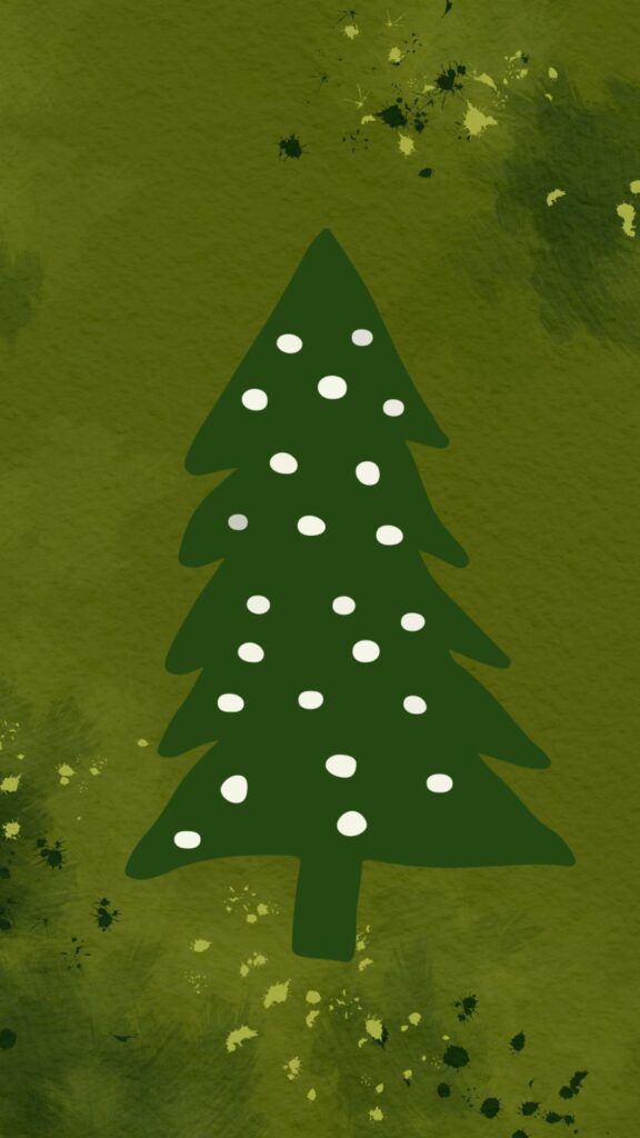 This minimalist Christmas wallpaper for iPhone showcases a stylized green Christmas tree with white dots on a textured green background. The modern design is perfect for users who prefer a subtle, artistic approach to holiday themes.